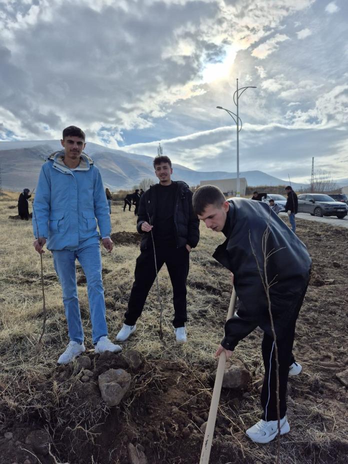 Akademik yöneticilerimizin ve öğretim elemanlarımızın katkılarıyla gerçekleştirilen etkinlikte, kampüs alanının ağaçlandırılmasına destek verilmiş; çevreye duyarlılık ve toplumsal sorumluluk bilincinin önemi vurgulanmıştır. Etkinlik, fidan dikiminin ardından çekilen hatıra fotoğrafları ile sona ermiştir.